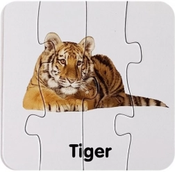Otkrijte pametan način kako djecu upoznati s engleskim jezikom i svijetom životinja. Svaki par slagalice prikazuje životinju i njezin naziv na engleskom (npr. Lion, Giraffe, Elephant), što prirodno proširuje rječnik. Zahvaljujući samokontrolnom sustavu djeca sama prepoznaju ispravne parove.