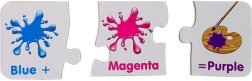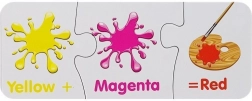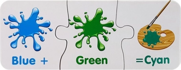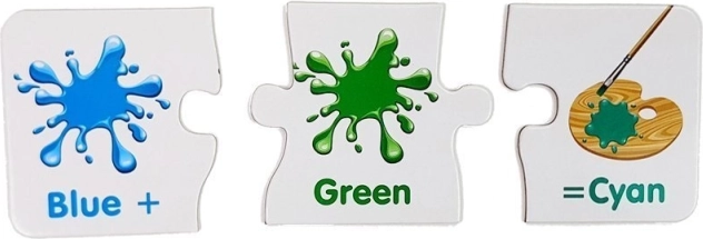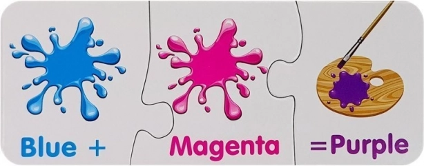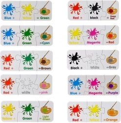 Svaka mini puzzle prikazuje dvije boje i dobivenu nijansu. Djeca brzo shvaćaju principe miješanja i lakše pamte boje.