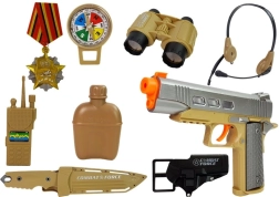 Vojni set s priborom Pištolj Nož Dalekozor Slušalice Zviždaljka Kratkovalna radio-stanica