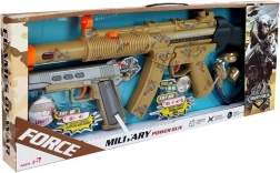 Ovaj vojni set u modernom maskirnom stilu nudi djeci puno akcije i mašte. Veliki pištolj sa svjetlosnim diodama i zvukom brze pucnjave oduševit će dinamičnom igrom, dok će manji pištolj/„revolver“ upotpuniti opremu autentičnim zvukovima pojedinačnih hitaca i repetiranja. Slušalice s mikrofonom olakšavaju komunikaciju među malim „vojnicima“, a zviždaljka služi kao signal za akciju.