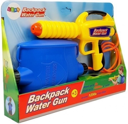 Ovaj vodeni set sadrži višebojni vodeni pištolj spojen s praktičnim spremnikom na leđima. Zahvaljujući spremniku na leđima igračka je lako prenosiva, a djeca će se osjećati kao pravi junaci. Igračka je vrlo jednostavna za upotrebu — dovoljno je napuniti spremnik vodom, pažljivo ga zatvoriti, nekoliko puta napumpati vodu i naciljati metu. Pištolj ima domet do 8 metara.