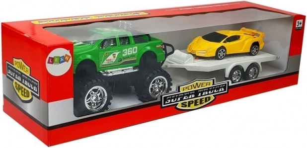 Auto s prikolicom nudi nezaboravnu zabavu za djecu koja vole stvarati vlastite priče. Povucite terenac unatrag i promatrajte kako zahvaljujući trenjnom pogonu brzo juri po podu. Prikolicu je moguće lako odvojiti, a sva se vozila mogu koristiti zasebno.