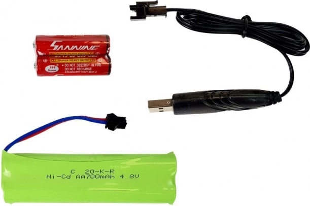 - Baterija 4,8 V / 700 mAh u pakiranju, upravljač na 2× AA (nisu uključene).