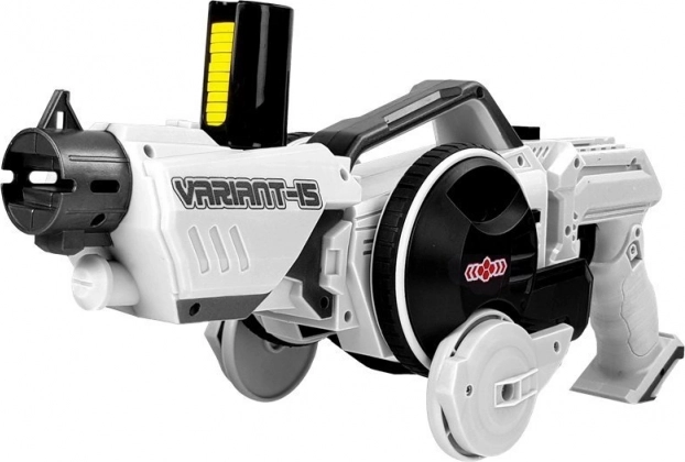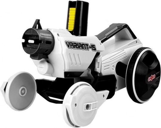 Ova originalna igračka spaja dvije zabave u jednoj: brzo RC vozilo i akcijski pjenasti pištolj. Pomoću daljinskog upravljača lako ciljate, krećete se naprijed ili natrag i pritiskom tipke ispaljujete pjenasti projektil. Zahvaljujući frekvenciji 2.4 GHz upravljanje je stabilno i bez smetnji.