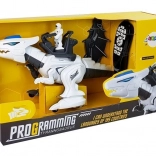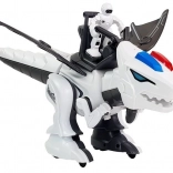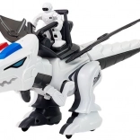 Robot je izrađen od izdržljive plastike u bijelo-crnoj kombinaciji boja s crvenim i plavim detaljima. Njegov dizajn uključuje pokretne dijelove, poput krila i nogu, što omogućuje dinosauru animirane pokrete. Sve je upotpunjeno figurom jahača koji „upravlja“ dinosaurom.