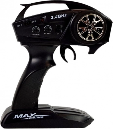 Upravljač radi na frekvenciji 2,4 GHz, što omogućuje utrkivanje u grupama bez međusobnih smetnji. Pruža niz funkcija, uključujući vožnju unatrag, podešavanje zakreta kotača i regulaciju brzine, što povećava zabavu u vožnji.