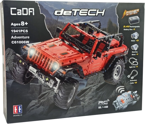 Sastavite vlastiti terenac i krenite u akciju! Ovaj CADA set s 1941 dijelom nudi daljinsko upravljanje, funkcionalno upravljanje kotačima, otvarajuća vrata i svjetla. Robusna konstrukcija, gumeni kotači i punjivi pogon osiguravaju sjajnu zabavu za djecu od 8 godina i odrasle entuzijaste.