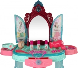 Sadrži raznovrsne kozmetičke dodatke: dijelove za sastavljanje toaletnog stolića, naljepnice, sušilo za kosu, češalj, lakove za nokte, prstenje, narukvice, ogrlicu, ukosnice, miris, ruževe i stoličicu. Toaletni stolić dolazi u pastelnim bojama koje se lako uklapaju u svaku dječju sobu.