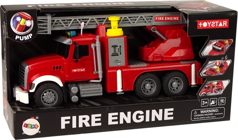 Dodatne funkcije, poput zvučnih i svjetlosnih efekata, dodaju cijeloj igri dojam i realizam. Upozoravajuće sirene na vrhu signaliziraju kretanje, a gumbi na gornjoj strani zaduženi su za zvukove – truba, pokretanje motora, signal. Zahvaljujući crvenoj boji vozilo će biti vidljivo izdaleka. Vatrogasno vozilo ima trenjni pogon stražnje osovine push-pull, dovoljno je pritisnuti stražnji dio, pustiti naprijed i uživati u brzini.