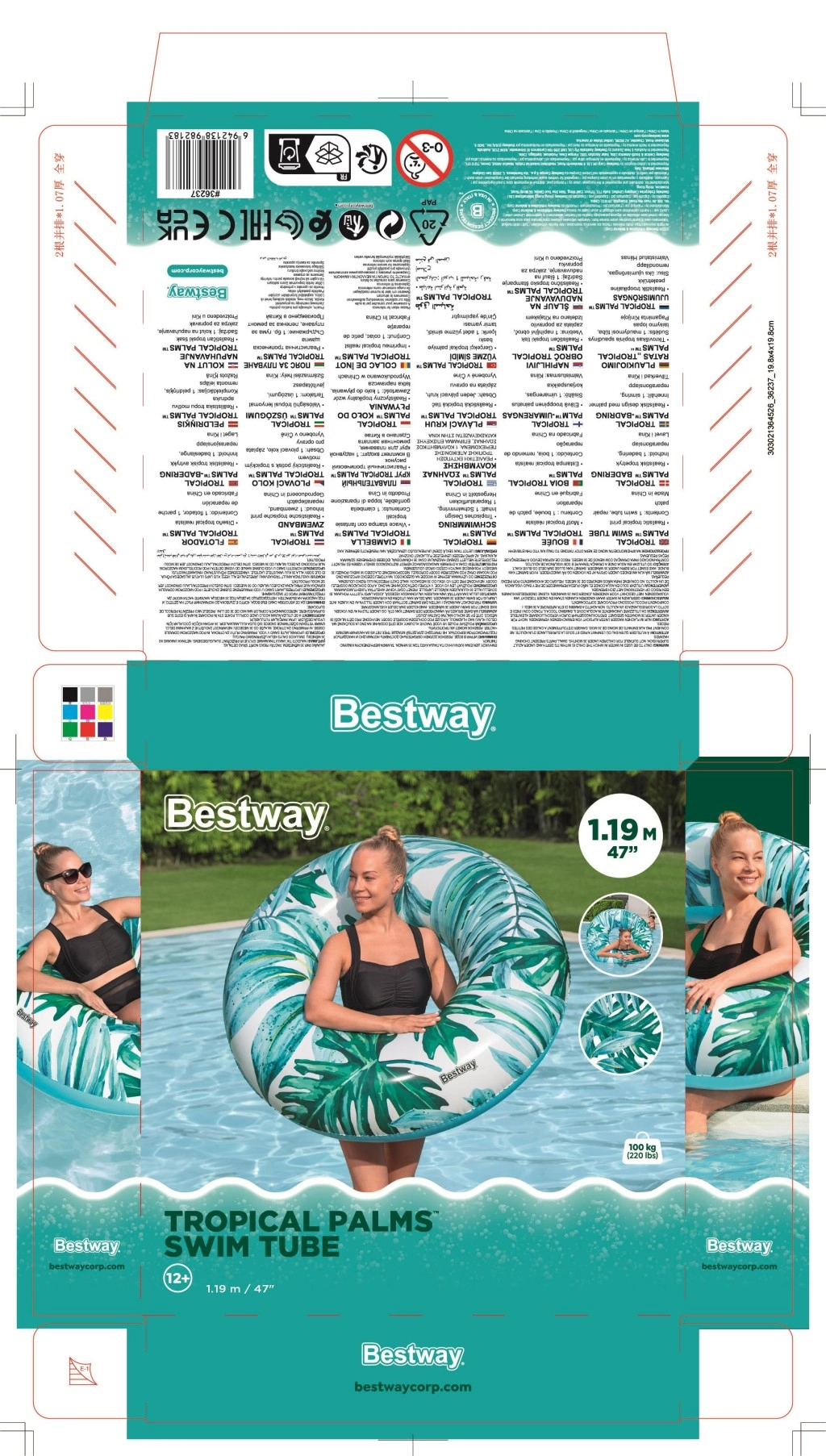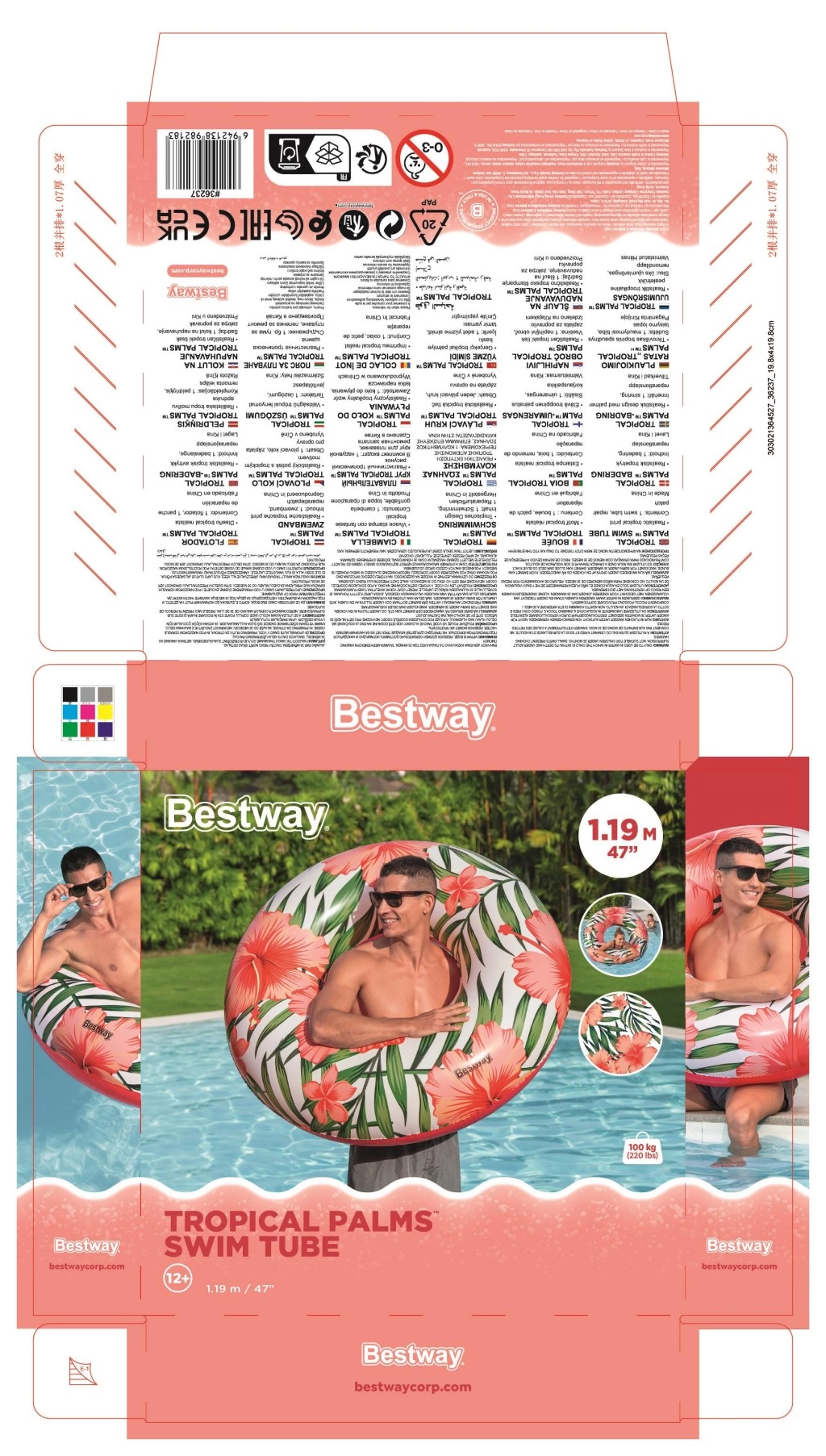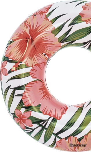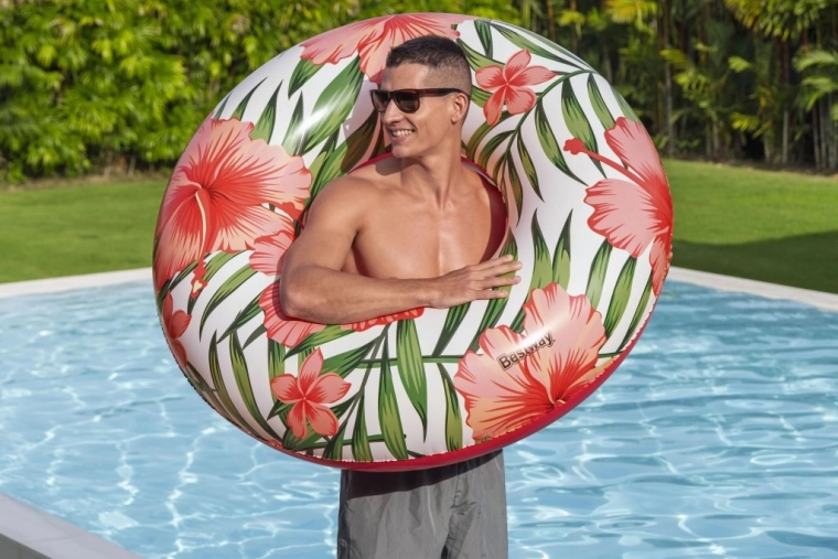 Veliki plivaći prsten BESTWAY Tropical Palms donosi udobnost, stabilnost i stil u svaku vodenu avanturu. Zahvaljujući kvalitetnom PVC materijalu prsten je izdržljiv i spreman za višekratnu uporabu tijekom cijelog ljeta. Tropski print s listovima i cvjetovima daje vašem odmoru šarm, bilo da se izležavate na vodi ili se igrate s djecom.