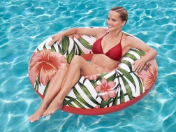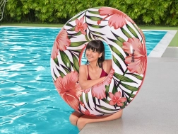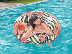 Stilski plivaći kolut BESTWAY s tropskim cvjetovima odličan je izbor za relaksaciju i vodenu zabavu. Zahvaljujući velikom promjeru 119 cm pruža udobnost i stabilnost, bilo da učite plivati ili se samo opuštate na površini. Izdržljiv materijal PVC podnosi slanu i kloriranu vodu te se lako održava.