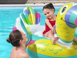 Njegov izdržljivi PVC materijal pruža sigurnost u svojoj trajnosti i otpornosti na UV zračenje. Igračka je dizajnirana tako da bude idealna i za djecu i za odrasle, te je izvrsna za opuštanje na moru, jezeru ili u bazenu. S maksimalnim kapacitetom težine od 45 kg, može ponuditi sigurno i zabavno mjesto za sjedenje i odmor u vodi.