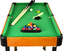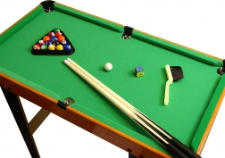 Stol stane u svaku dječju sobu, a visina je prilagođena našim najmlađima. Igraća površina presvučena je zelenim materijalom koji se koristi i kod velikih ekvivalenata biljarskih stolova. U otvorima za kugle montirane su mrežice.