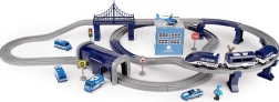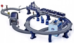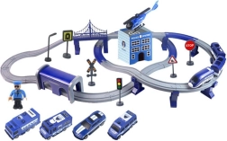 Policijski gradić ima policijsku bazu, 5 vozila i tračnice. Sve je u plavoj boji. Vlak na baterije vozi brzinom od 203 km/h.