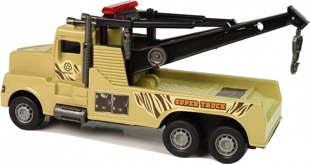 Ovo detaljno izrađeno vozilo za vuču “Super Truck” idealno je za akcijske scenarije na dječjem gradilištu i tijekom “prometnih nezgoda”. Stražnja dizalica s izvlačivim užetom i kukom upravlja se praktičnom bočnom ručicom, tako da dijete lako može pričvrstiti i premjestiti drugo vozilo na “bojište” ili parkiralište.