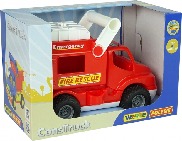 Otkrijte robusno vatrogasno vozilo ConsTruck koje potiče maštu, motoriku i logičko razmišljanje. Zahvaljujući gumenim kotačima vožnja je glatka na raznim podlogama, izvlačljiva ljestva i realistični detalji dodaju svakoj akciji dozu uzbuđenja. Otvoriva stražnja vrata i gornji pretinac primaju figurice ili sitne blago.