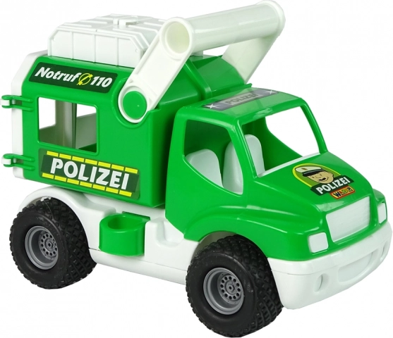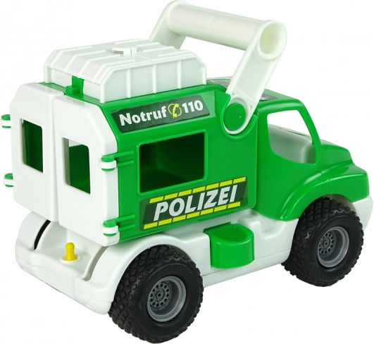 Zeleni policijski automobil ConsTruck marke Polesie izdržljiva je igračka za djecu od 1 godine. Nudi gumene gume s gaznim slojem za bolju prianjivost, otvarajuća stražnja vrata i gornji pretinac za skrivanje blaga i figurica. Bočna sigurnosna kopča prikolice i kiperska karoserija jamče zabavu na duge sate te potiču razvoj fine motorike i logičkog razmišljanja. Izrađeno od sigurnih, atestiranih materijala, s CE certifikatom.