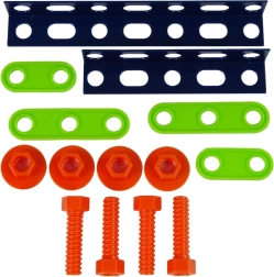 Sastavni dio su vijci, matice, podloške i kutnici za prve konstrukcije i vježbanje fine motorike.