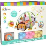 Ova mekana podloga od ugodnog materijala potiče djecu na otkrivanje boja, oblika i tekstura. Zahvaljujući varijabilnoj konstrukciji lako je pretvorite iz otvorene podloge za igru u ogradicu s mrežom sa strana, koja zadržava loptice i igračke u sigurnom prostoru. LED svjetla i melodije na lukovima, aktivirane pritiskom na gumbe, stvaraju poticajno okruženje i motiviraju na kretanje.