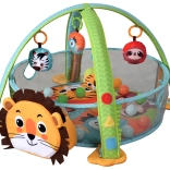 Pri igri na trbuščiću i na leđima dijete vježba finu i grubu motoriku te koordinaciju oko–ruka hvatanjem visećih igračaka. Lav dodatno služi kao praktičan spremnik za loptice. Set je pogodan od rođenja, ispunjava CE i normu EN 71, a zahvaljujući poklon-ambalaži odličan je izbor za nove roditelje.
