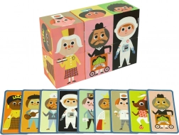 Kako igra funkcionira? Set sadrži 9 kartica, pri čemu svaka strana kartice prikazuje drugačiji lik. Također, kocke imaju 6 strana s različitim glavama ili trupovima. Vaš je zadatak uskladiti likove prema karticama, što zahtijeva koncentraciju, maštu i logičko razmišljanje. Ove aktivnosti na mnoge načine razvijaju dijete, pomažu prepoznavati oblike, boje i likove. Većina kartica predstavlja bajkovite likove ili suvremena zanimanja.