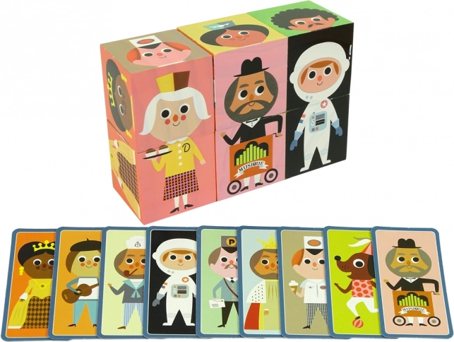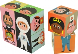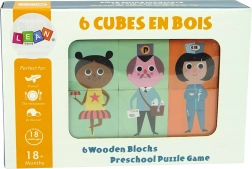 Naše drvene kocke predstavljaju bezvremensku igračku koju su voljeli naši djedovi i bake, roditelji i mi. Sada je možemo prenijeti našoj djeci kao alat za istraživanje svijeta. Kocke prikazuju likove iz bajki i aktualna zanimanja, potiču prepoznavanje karakteristične odjeće i detalja. Set uključuje 9 kartica s ukupno 18 likova i 6 kocki.