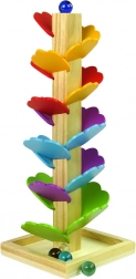 Drvene igračke izvrstan su izbor za malu djecu zbog svoje bezvremenosti i trajnosti. Ovo stablo s rampom za kuglice osmišljeno je kako bi pomoglo razvijati motoriku, kreativno razmišljanje i poznavanje boja. Djeca uče preciznost tako što postavljaju obojene listiće na prava mjesta na stablu, dok prate putanju kuglica koje se spuštaju prema dolje.