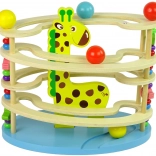 Ova šarena staza ima četiri razine niz koje se kuglice kotrljaju, a svojim oblikom i zadržavanjem pažnje zabavlja djecu. Svaki je element pažljivo ispoliran i obojen živim, sigurnim bojama. Drvena konstrukcija osigurava dugotrajnu izdržljivost i igračku koja će potrajati mnogo godina.