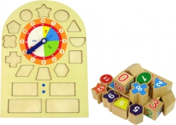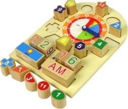 Drveni edukativni sat za najmlađe spaja zabavu i učenje. Uz njega se dijete uči prepoznavati oblike, boje i također čitati sate. Žive boje potiču dječju maštu i kreativnost.