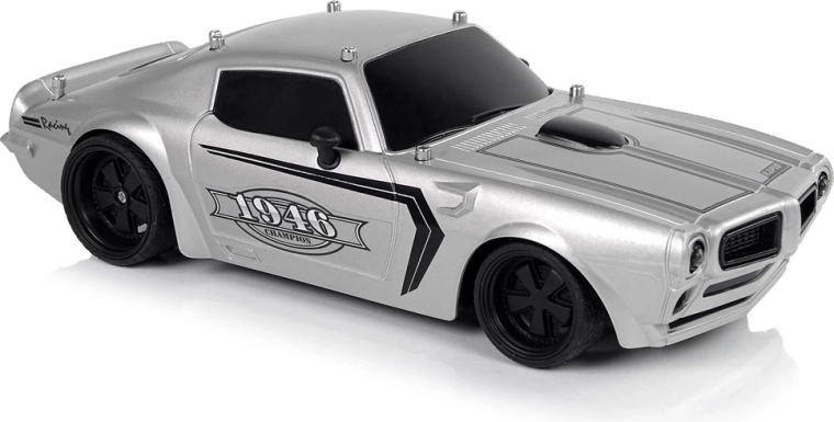 Vozilo ima laganu i čvrstu konstrukciju, sportski dizajn s crnim prozorima i crnim detaljima na poklopcu motora te naljepnicama Champion 1946. Gumene gume jamče prianjanje na podlogu tijekom vožnje. Upravljanje vozilom prava je zabava posebno za najmlađe, stoga će daljinski upravljač koji je dio kompleta omogućiti upravljanje malim modelom auta pomoću dviju odvojenih tipki za vožnju naprijed/natrag i u stranu.