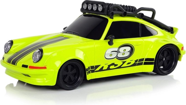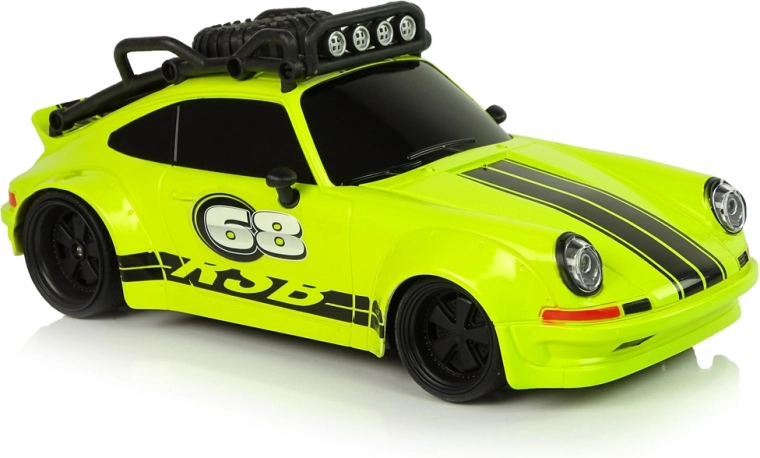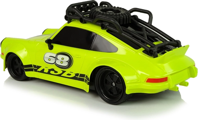 Automobil ima laganu i čvrstu konstrukciju, sportski dizajn s crnim prugama na krovu i haubi. Vanjski izgled je impresivan. Na krovu se nalazi nosač s rezervnim kotačem i svjetlima. Pri brzoj vožnji ništa vas neće iznenaditi. Gumene gume jamče prianjanje na kolnik. Upravljanje vozilom velika je zabava, osobito za one najmlađe. Model autića može se upravljati pomoću daljinskog upravljača koji je dio seta, s dva odvojena gumba za vožnju naprijed/natrag i u stranu.