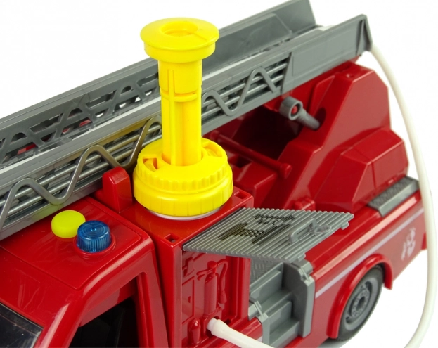 Vatrogasni auto je opremljen sustavom koji omogućuje prskanje vode iz crijeva, pružajući djeci realističnu igru.
