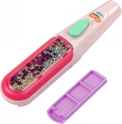 Omogućite svojoj kćeri da otkriva nove stilove uz ovaj set za bojanje kose koji sadrži sve potrebno za ukrašavanje vlasi. Priložena mini pegla omogućuje jednostavno nanošenje boja i izradu frizura koje će sigurno oduševiti sve prijateljice u školi. Za jednostavnu upotrebu dovoljno je odabrati tri boje, umetnuti ih u aplikator, pošpricati kosu vodom i prijeći po njoj mini peglom. Frizura je gotova brzo i bez napora!