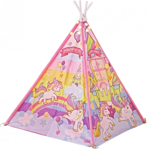 Šator se lako sklapa i pruža djeci prostor za zabavu ili odmor nakon napornog dana. Njegov krov krase motivi veselih jednoroga i šarenih dvoraca, koji potiču dječju maštu.