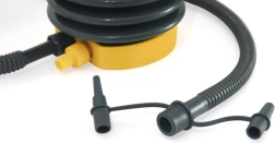 U paketu se nalazi fleksibilno crijevo i set od 3 zamjenjiva nastavka, pa bez problema možete napuhati madrace, bazenske igračke, lopte i manje čamce. Zapremnina od 500 cm³ (0,5 l) po potisku pomaže brzo i učinkovito dovesti potreban zrak.