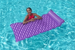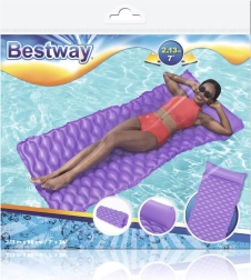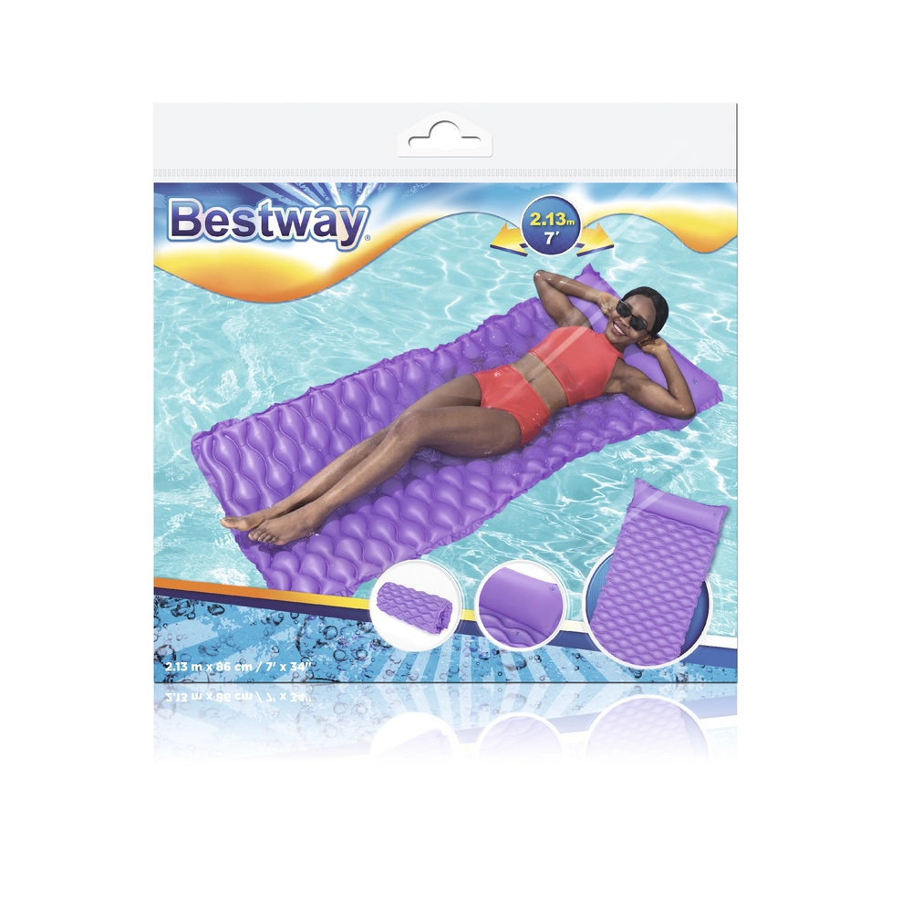 Plutajuća ležaljka Bestway ističe se udobnim oblikom s ugrađenim jastukom koji podupire glavu i vrat. Valovita površina povećava udobnost pri ležanju, dok čvrsti PVC osigurava dug vijek trajanja i otpornost na manja oštećenja.