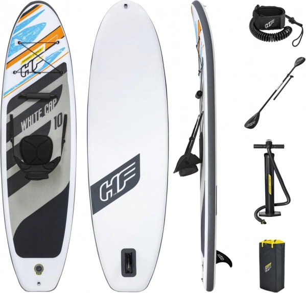 Hydro-Force White Cap iznimno je svestrana napuhujuća daska za paddleboarding koja će lako osvojiti srca svih ljubitelja vode zahvaljujući izdržljivom materijalu i stilskom dizajnu. U kompletu je udobno sjedalo koje omogućuje pretvorbu u kajak.