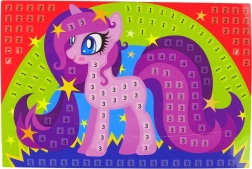 Slika s ponijem i numeriranim površinama za jednostavno slaganje šarenih kvadratića.