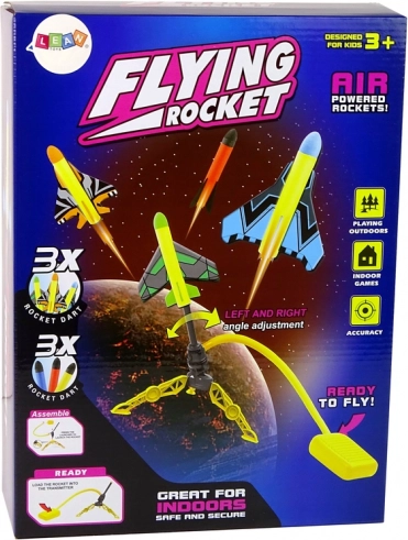 Sastavite postolje, stavite raketu na mlaznicu, nagazite na pumpu i gledajte kako raketa leti visoko u zrak. Jednostavno načelo na komprimirani zrak bez kabela i baterija jamči brzu i intuitivnu igru bilo gdje – u vrtu, parku ili kod kuće.