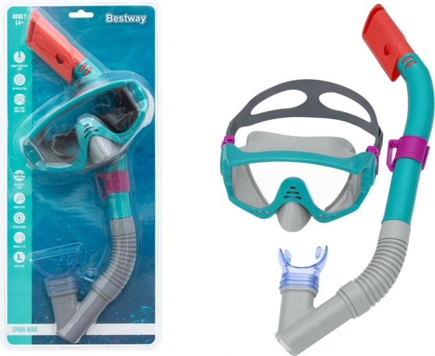 BESTWAY set za ronjenje za mlade i odrasle od 14 godina kombinira udobnu masku i disalicu za sigurno istraživanje ispod površine. Mekano silikonsko brtvljenje i podesiva traka osiguravaju savršeno prianjanje bez propuštanja, izdržljivo staklo s UV filtrom štiti oči, a disalica s mekanim usnikom i zaštitom od prodora vode olakšava disanje. Lagani, vizualno atraktivan set idealan je za odmor i bazen.