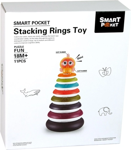 Ova šarena stogana piramida s prstenovima i svjetlucavom patkicom idealna je za razvoj motoričkih vještina i prepoznavanje boja kod djece. Igračka pomaže u razvoju koordinacije ruke i oka i odličan je alat za učenje o veličinama.