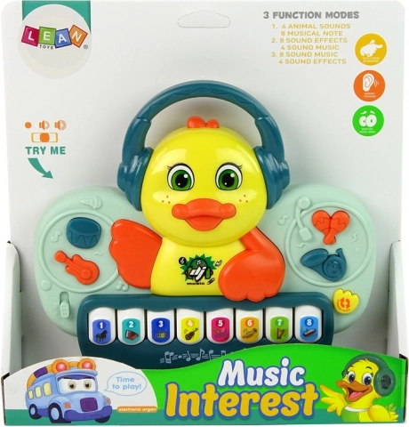 Interaktivno klavirčić Patkica je savršeni instrument za prvi susret djece s glazbom. Djeca poboljšavaju svoje motoričke sposobnosti i otkrivaju svijet oko sebe putem osjetila - promatranjem, slušanjem i dodirom. Igračka je pažljivo izrađena u živim bojama s motivom patkice, što potiče otkrivanje i spoznavanje. Svjetleći elementi i zvučni efekti privlače pažnju djece i pomažu im u upoznavanju okolnog svijeta.