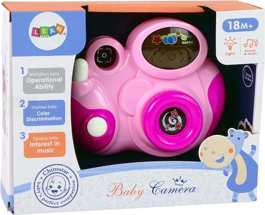 Ružičasti interaktivni dječji fotoaparat razveselit će male istraživače od 18 mjeseci. Nudi svjetlosne efekte, zvuk okidača i 3 vesele melodije koje potiču koordinaciju ruka–oko i osjetila.