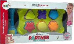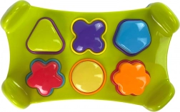 Gornja ploča sa šest oblika i naglašenim bojama potiče razlikovanje boja i oblika te drži pažnju djeteta.