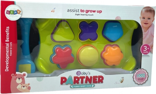 Zabavna i sigurna igračka za najmlađe: dvostrani sorter s čekićem pomaže djeci prepoznavati oblike i boje, razvija finu motoriku, koordinaciju oko–ruka i strpljenje. Zahvaljujući šarenim dijelovima i zvukovima zvečkica unutar kockica, igra je dugoročno omiljena među djecom.