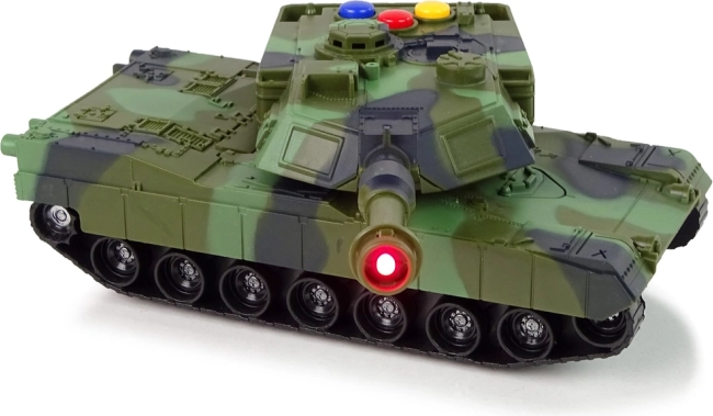 Otkrijte zabavan i izdržljiv tenk za male zapovjednike. Zahvaljujući autentičnom maskiranju, gumenim gusjenicama i rotirajućoj cijevi, model djeluje uvjerljivo i potiče kreativnu igru. Tri obojena gumba aktiviraju različite zvukove, a crveno svjetlo u cijevi simulira pucanj.