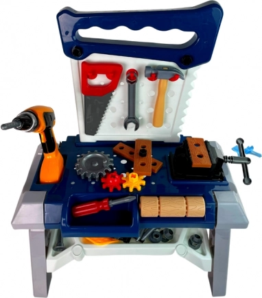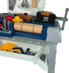 Ova stabilna dječja radionica u elegantnoj kombinaciji mornarski plave i sive pružit će djeci sate kreativne zabave. Nakon umetanja baterija svrdlo se doista okreće, pa djeca mogu sigurno isprobati posao kao pravi majstori. Svi su elementi izrađeni od kvalitetne, izdržljive plastike i ergonomskog su oblika za male ruke.