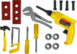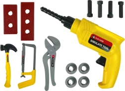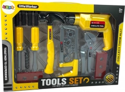 U setu se nalazi sve potrebno za zavrtanje, bušenje i “rezanje” – od bušilice i pile do čekića, kliješta te raznih vijaka s podloškama i maticama. Žuta boja privlači pažnju i potiče vizualnu percepciju, dok igra “kao profesionalac” razvija finu motoriku, koordinaciju oko–ruka i kreativnost.