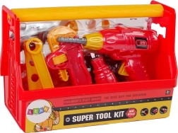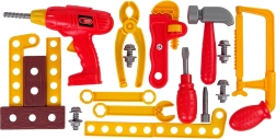 Kompletan dječji set za male majstore u praktičnom koferiću. Sadrži bušilicu prilagođenu malim rukama, odvijač, čekić, kliješta, francuski ključ, škripac i spojne dijelove. Lagani plastični materijal, izražajna crvena boja i mogućnost svega pospremiti u prijenosnu kutiju potiču razvoj motorike i kreativnu igru. Prikladno od 3 godine, s CE certifikatom.