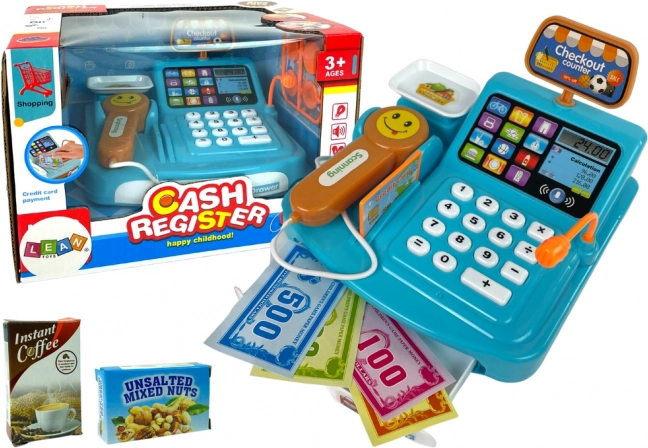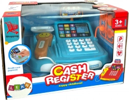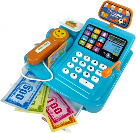 Zabavna dječja blagajna u plavoj boji s vagom, skenerom i čitačem kartica pretvara svaki dan u realističnu igru trgovine. Podržava učenje računanja, prepoznavanje novca i razvoj komunikacije. Skener proizvodi realistične zvukove kao u supermarketu, a set sadrži i kovanice te kutijicu keksa za još autentičniji doživljaj.